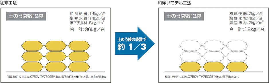 和洋リモデル工法は、洋風便器への取り替えで、工期等の施工条件でお困りの現場に最適です。